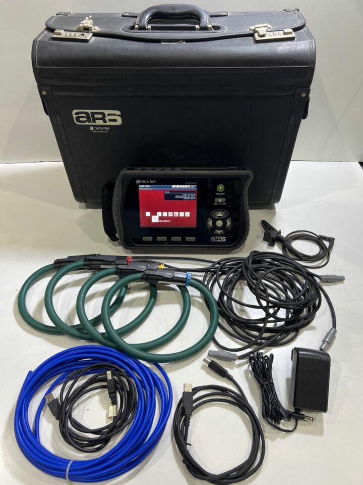 The Circutor AR6 Power Analyzer is a portable, comprehensive electrical measurement and diagnosis instrument designed for use in single-phase, two-phase, and three-phase networks. It provides simultaneous measurement and recording of all key electrical parameters including voltages, currents, power (active, reactive, apparent), energy (consumed and generated), power factor, frequency, harmonics, leakage current, and transient events such as sags, swells, and voltage spikes. With its true RMS (TRMS) measurement capability and high-resolution 5.7″ color graphic display, users can visualize waveforms, phasors, harmonics, and real-time data directly on the instrument to quickly detect anomalies and assess network performance.