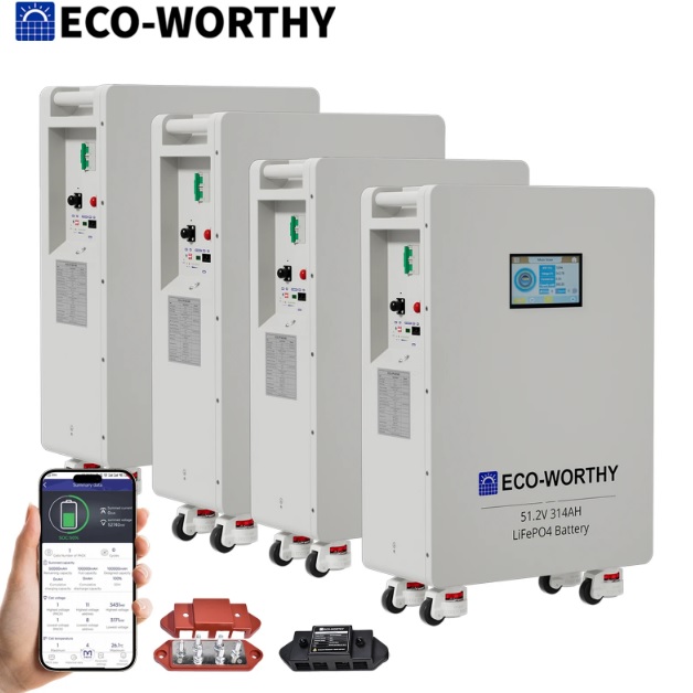 ECO-WORTHY 64.3kWh 4Pack 48V 314AH LiFePO4 Battery Vertical Standing Backup