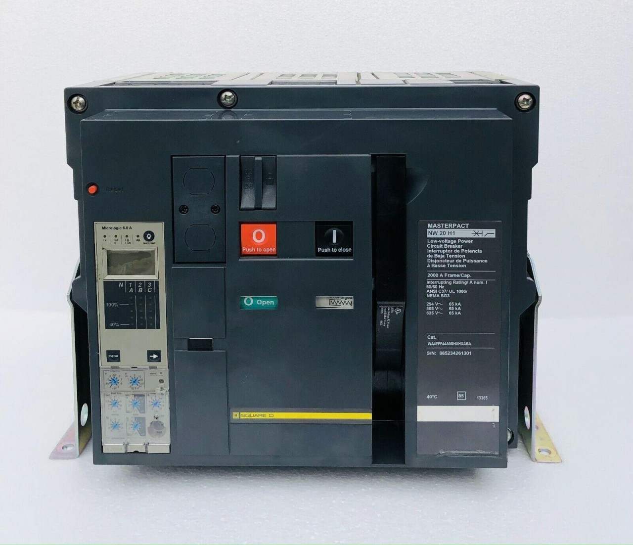 Square D Masterpact NW20H1 EO DO 2000A 600VAC Circuit Breaker, Micrologic trip unit (e.g., 5.0, 6.0, or 7.0), 3-pole configuration, Electrically operated (EO), Drawout mechanism (DO), Line and load terminal connectors, Racking mechanism, Control wiring and terminal blocks, Mounting hardware, Calibration or test certificate (if applicable), User manual and installation guide, Safety and compliance documentation, Manufacturer warranty card, Original Square D packaging